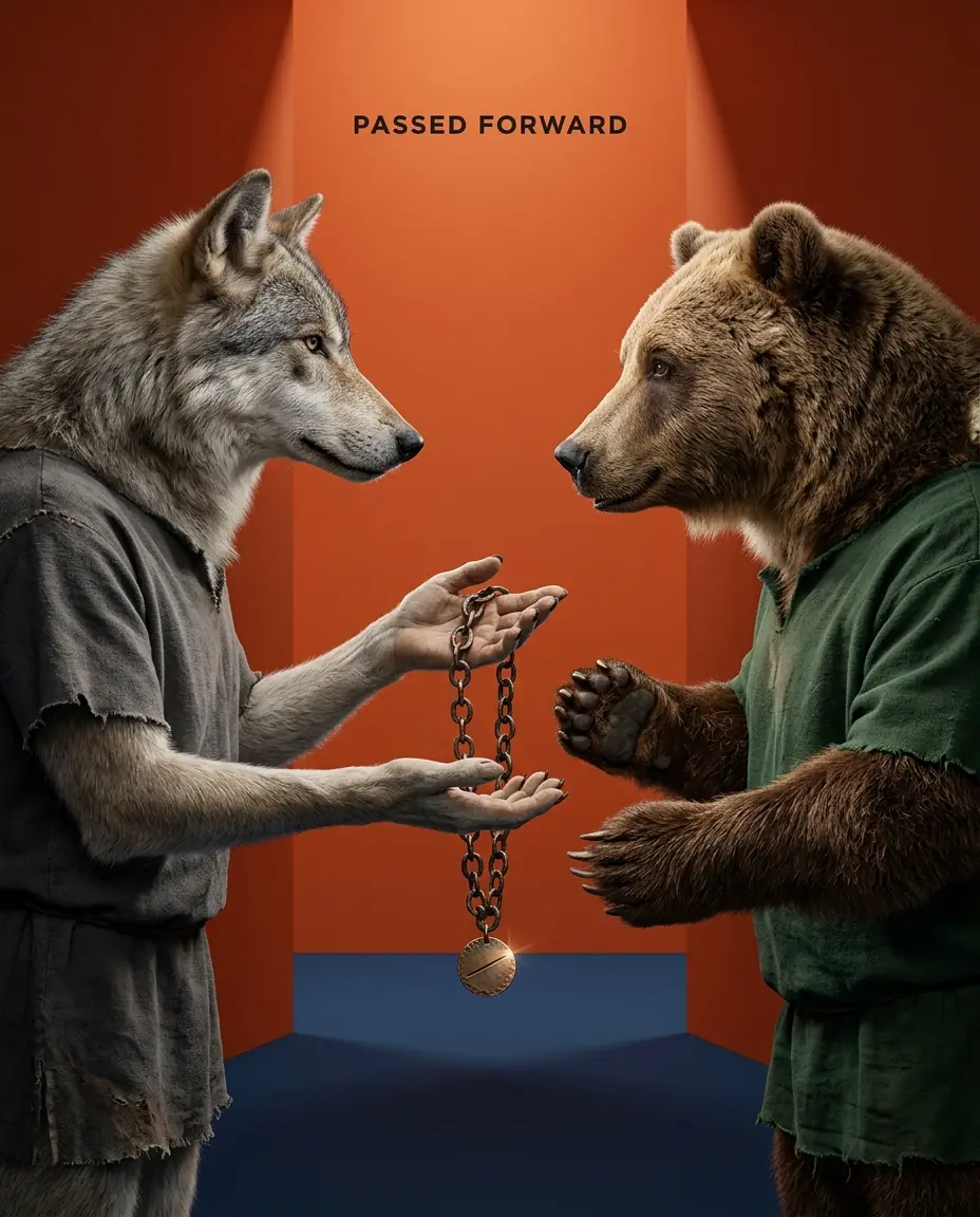 Necklace = the object you own — passed between warriors across time