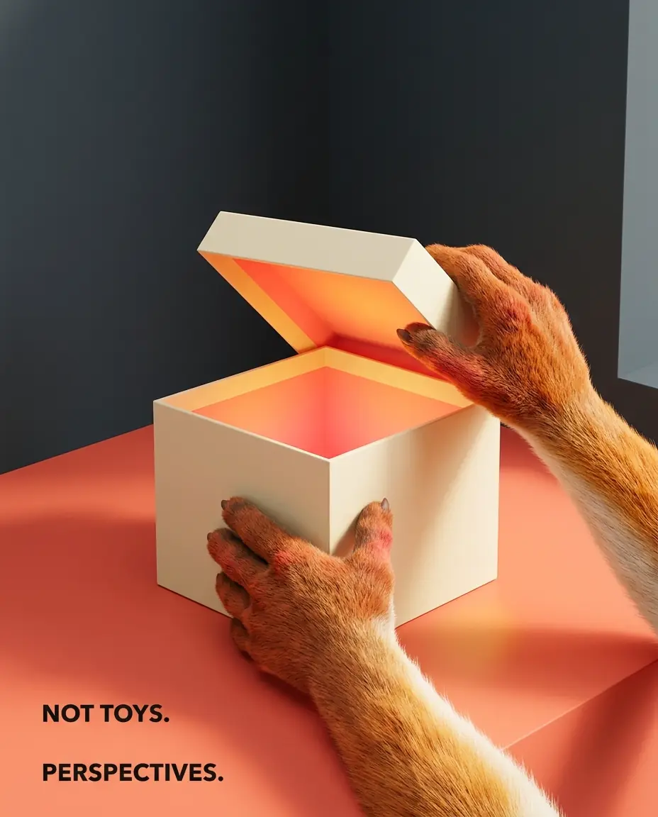 **Box = the container — open it, something playful is inside